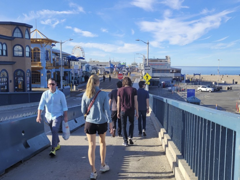 Bright and early on Saturday, we hopped on a bus to Amsterdam and flew off to Los Angeles – the playground of film giants and iconic game studios, not to mention the virtual streets of GTAV! This city's not just about rubbing elbows with Hollywood stars; it's where waves meet the likes of Venice Beach and Santa Monica. Upon arrival, a bus took us from the airport to our hostel. That evening, we explored the iconic Santa Monica Pier.